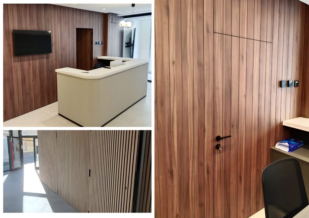 También encajan a la perfección en oficinas, despachos profesionales, hoteles, showrooms y proyectos contract donde la imagen del espacio forma parte del valor del negocio. Una pared panelada con una puerta perfectamente integrada transmite orden, diseño y nivel. Y eso importa mucho más de lo que muchos creen.
